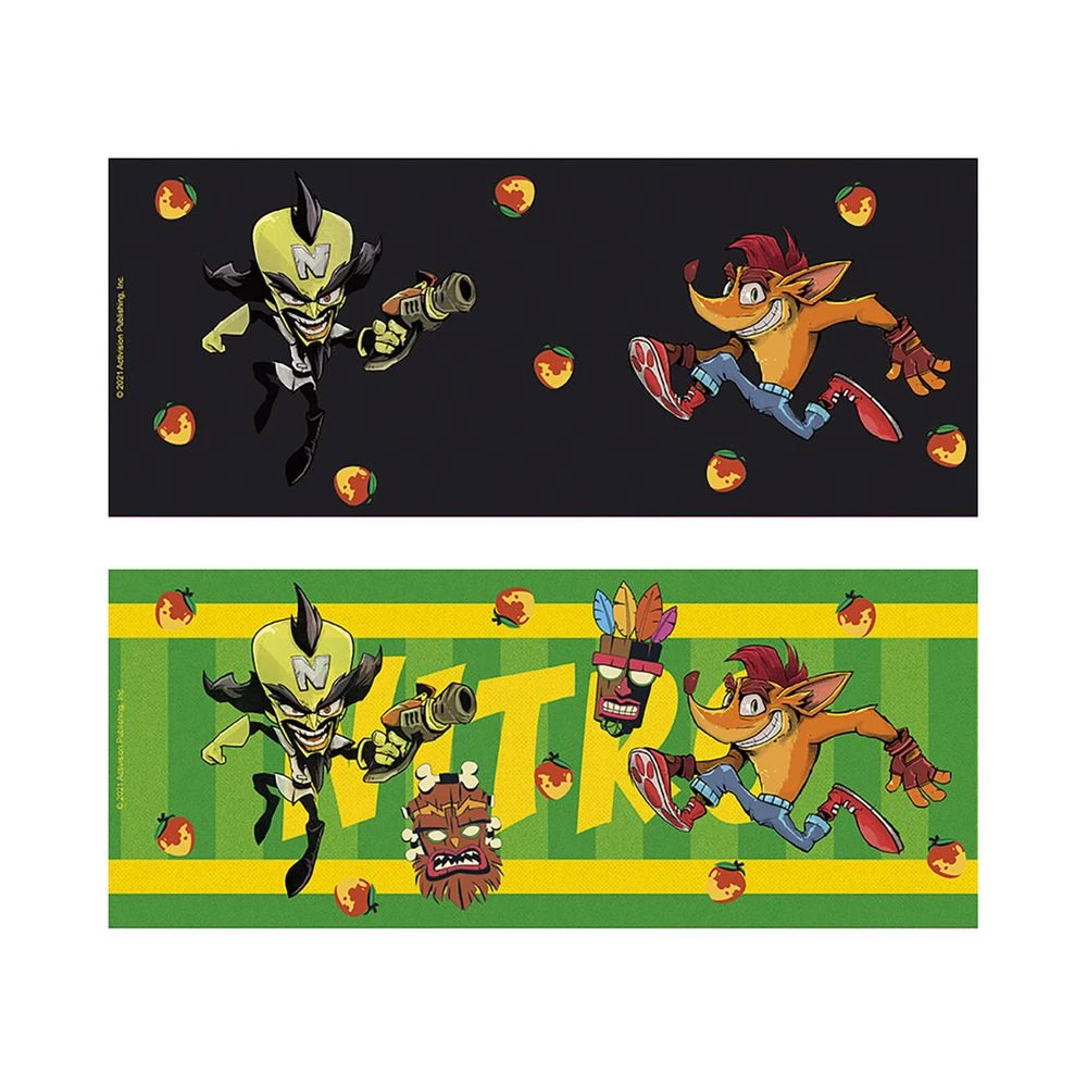 Die Tasse zeigt Crash und Dr. Neo Cortex. Füllt man ein heißes Getränk ein, erscheinen Aku Aku und Uka Uka, sowie das Wort „Nitro“.