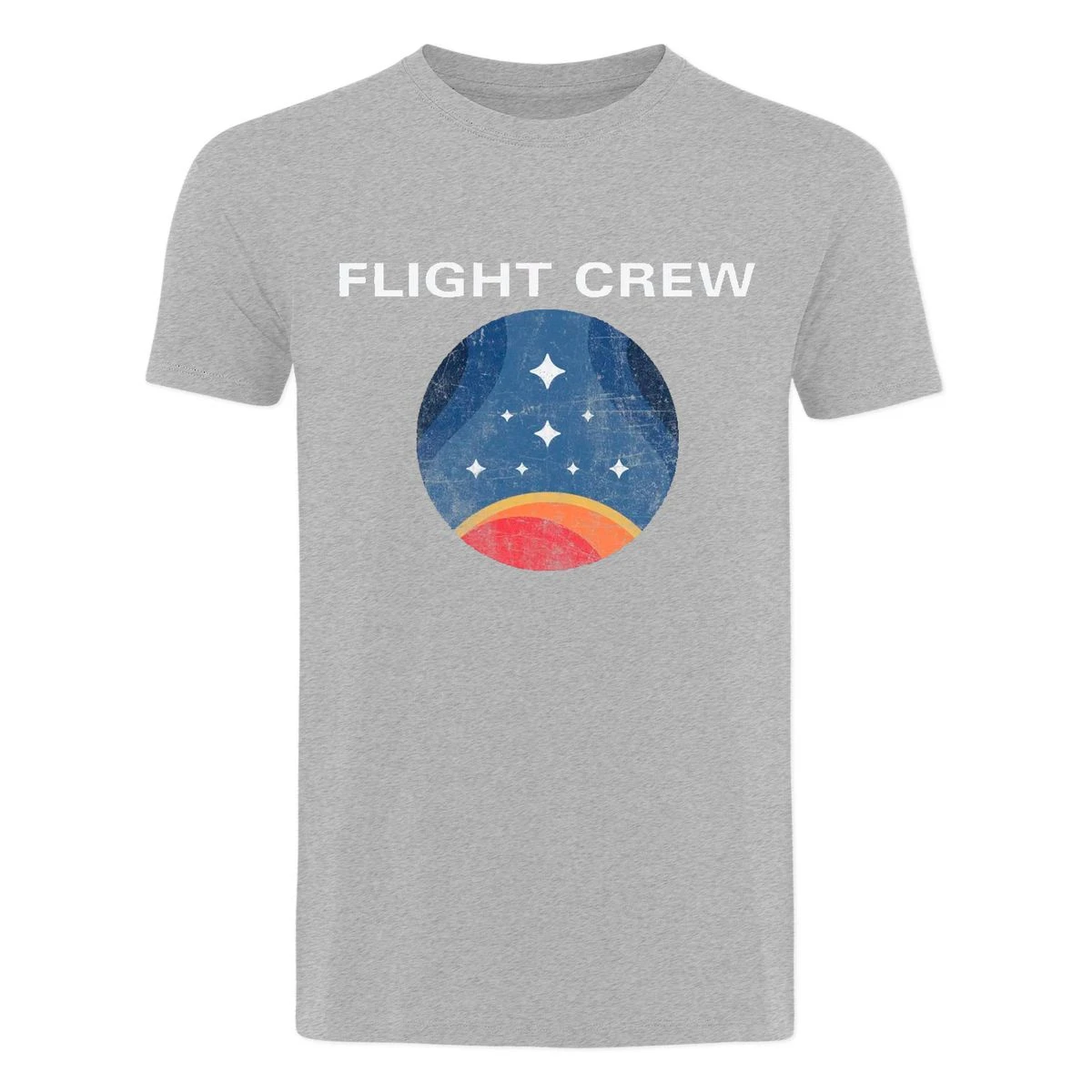 Das T-Shirt zeigt das Logo von Starfield und den Spruch „Flight Crew“.