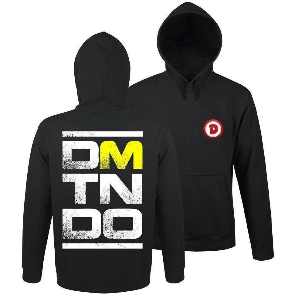 Der Hoodie zeigt die Buchstaben DMTNDO.