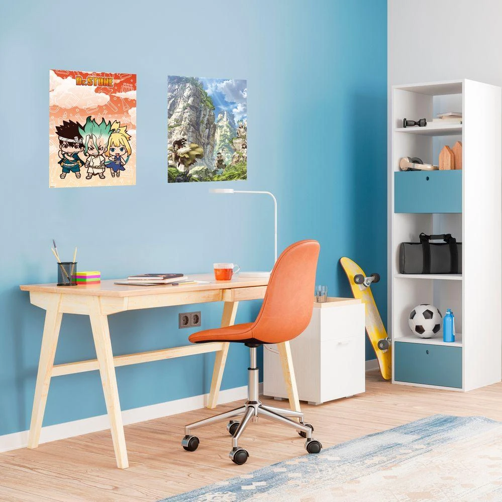 Die hochwertigen Poster zeigen Senku, Kohaku und Chrome im Chibi-Stil, sowie Stone World.