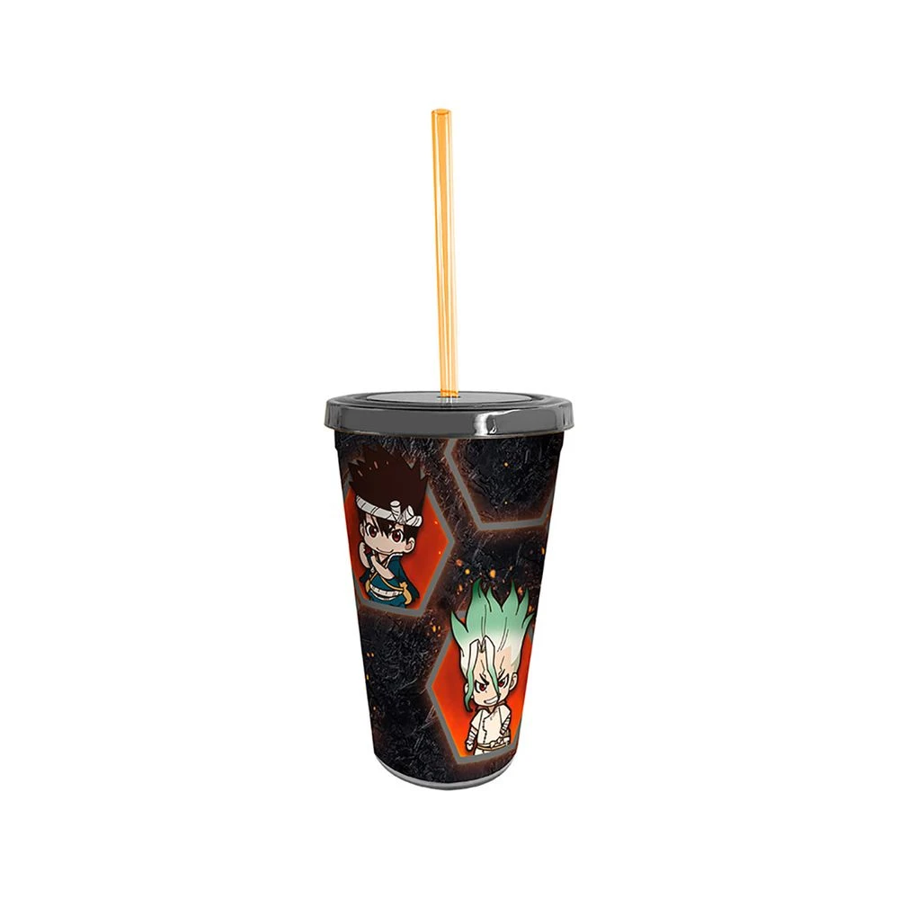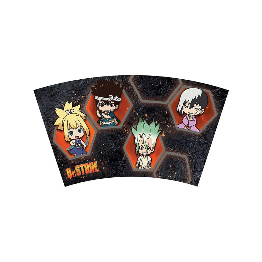 Der Trinkbecher zeigt die Charaktere aus Dr. Stone im Chibi-Design.