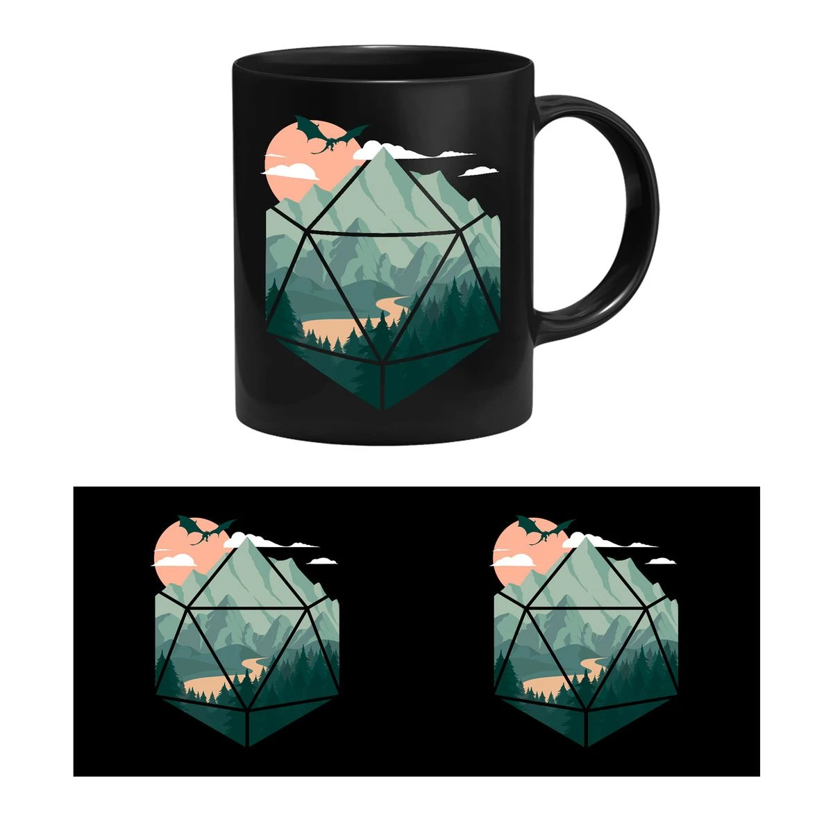 Die Tasse zeigt eine Landschaft innerhalb eines W20.