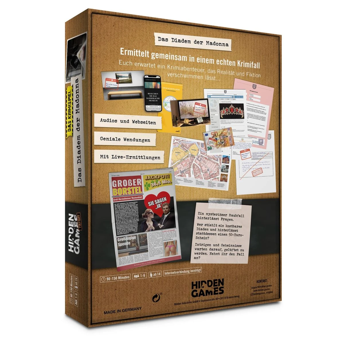 Das berühmte Diadem der Madonna wurde aus einem Museum in Groß Borstelheim gestohlen. Um einen vermeintlich simplen Einbruch strickt sich ein Konstrukt aus Intrigen und Geheimnissen. Seid live dabei, um Kommissar Gottlieb Hahnke zu unterstützen. Stürzt euch Hals über Kopf in einen spannenden Krimifall und bahnt euch multimedial den Weg zur Lösung.