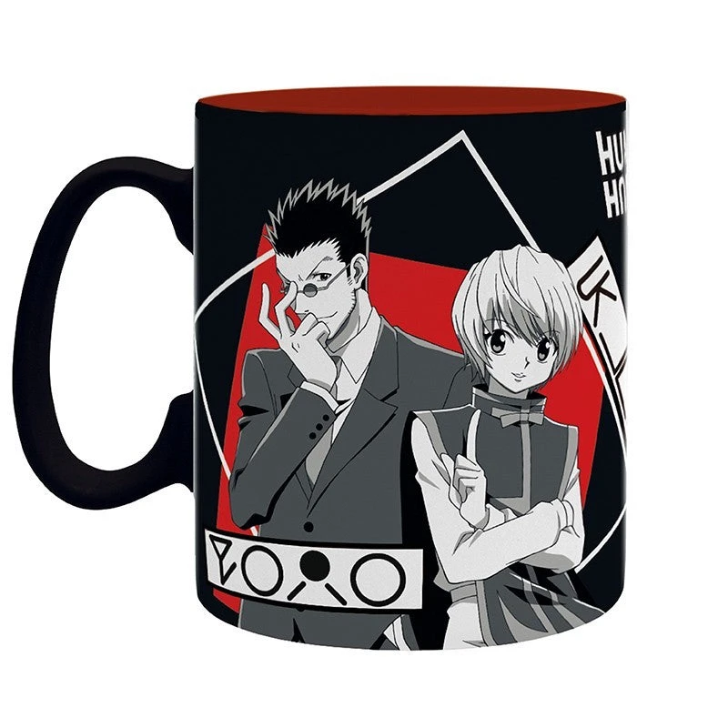 Die Tasse zeigt die Charaktere Gon, Kirua, Kuapika und Leorio.