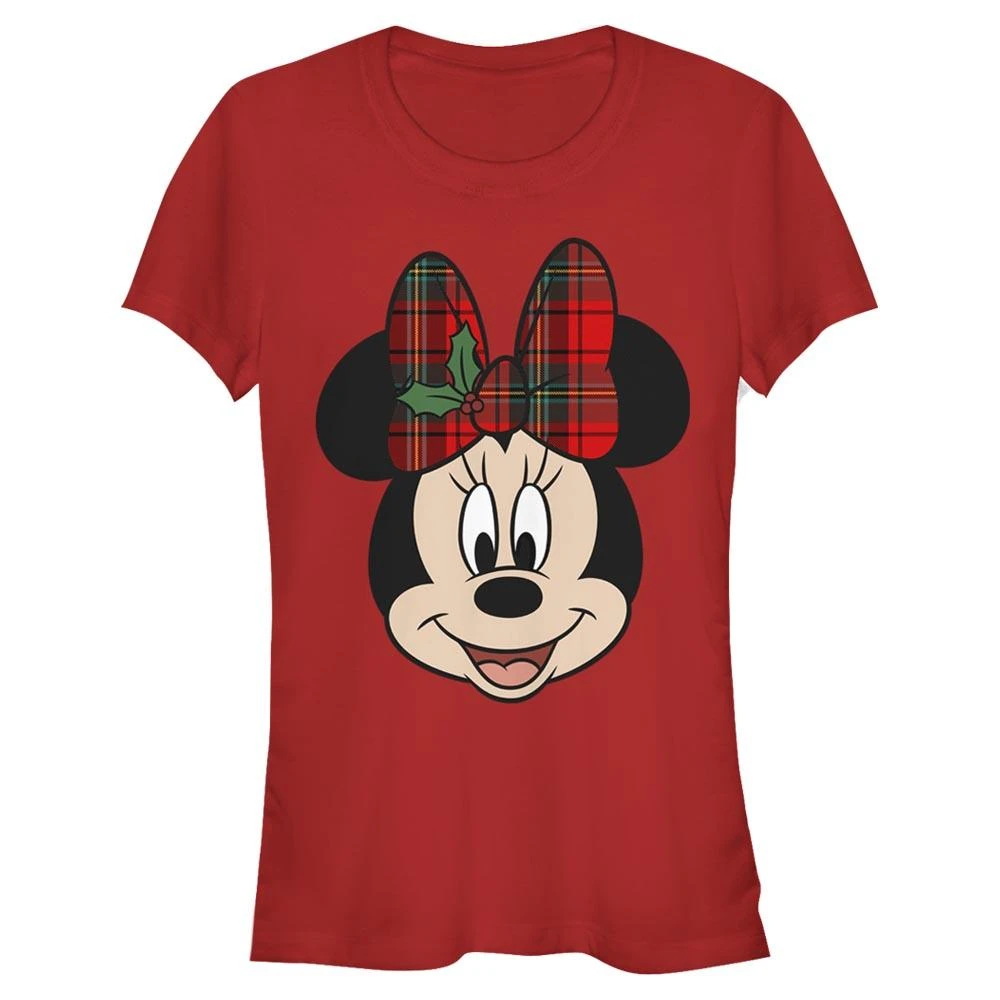 Das T-Shirt zeigt den Kopf von Minnie Mouse mit weihnachtlicher Schleife.