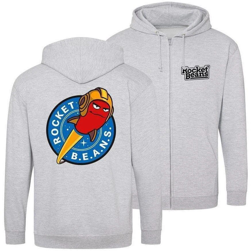 Der Zipper zeigt das Logo der Rocket Beans auf der Vorder- und Rückseite.