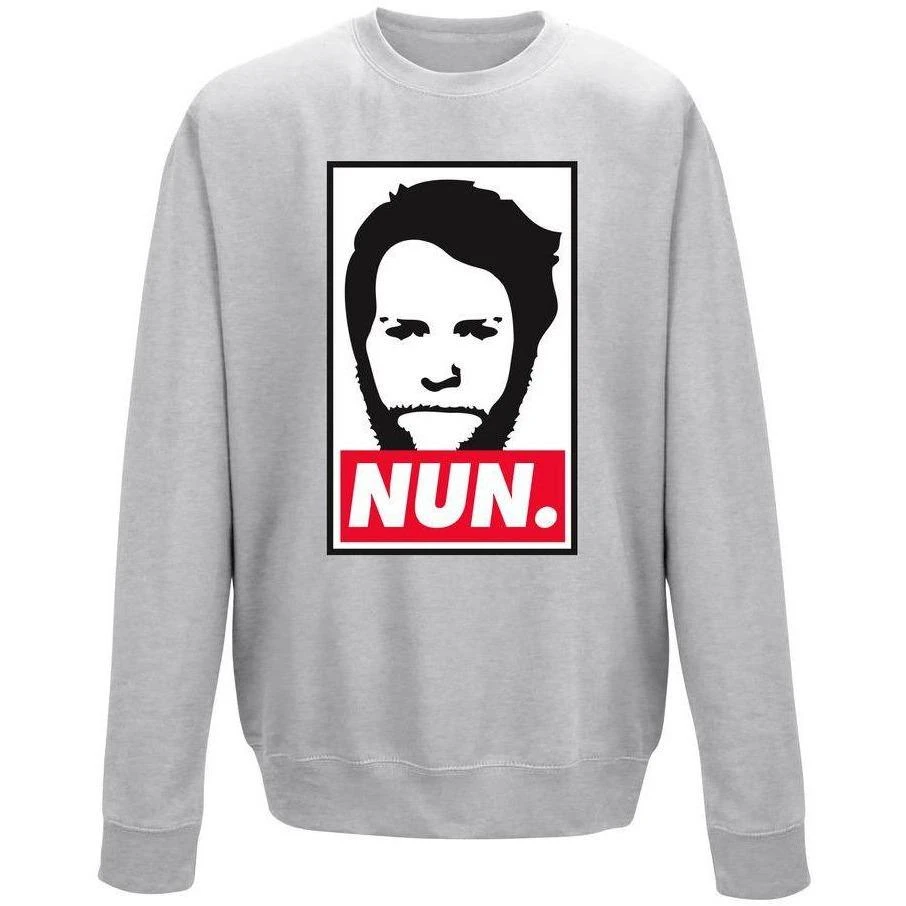 Das Sweatshirt zeigt Nils und das Wort Nun.