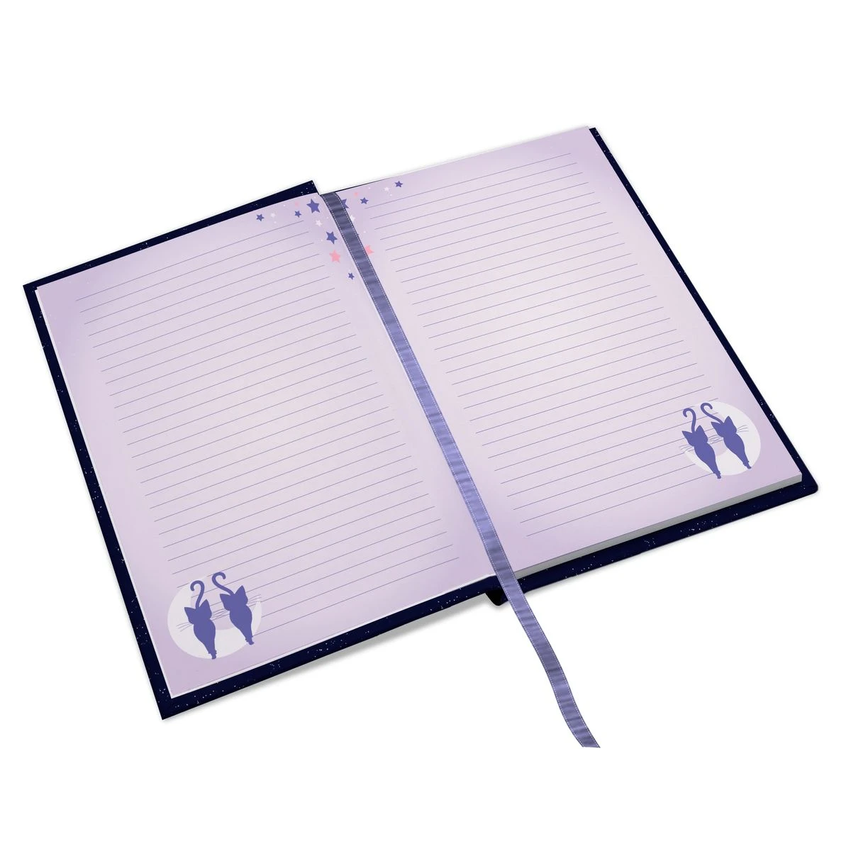 Das Notizbuch zeigt die Katzen Luna und Artemis.