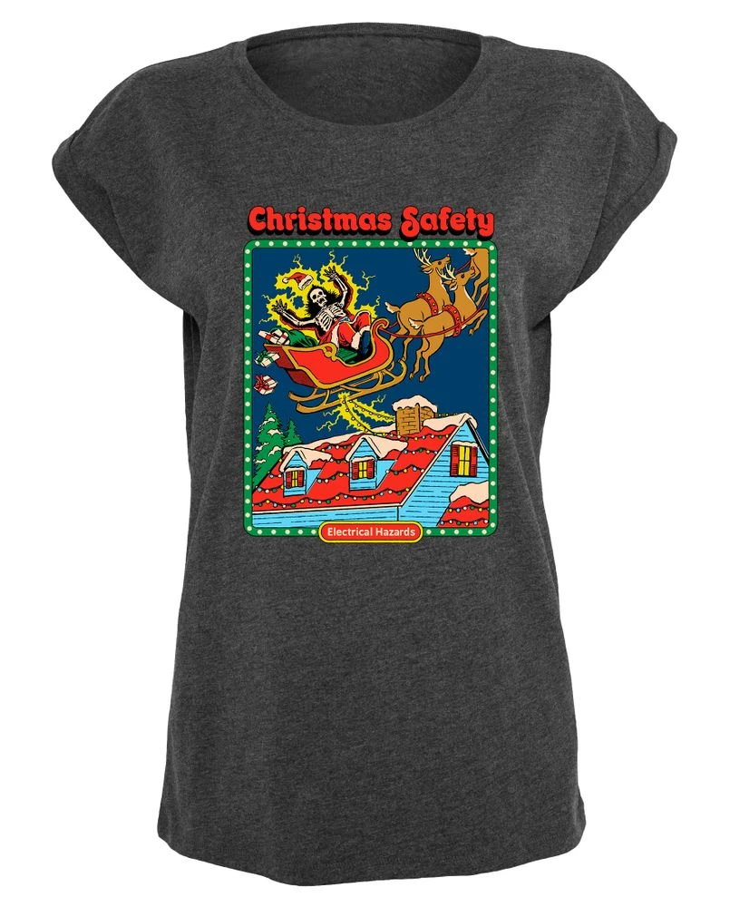 Das T-Shirt zeigt den Weihnachtsmann, der in seinem Schlitten einen Stromschlag bekommt.